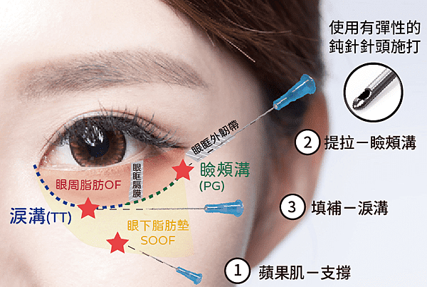 醫師的小提醒:這一步非常考驗醫師的技術。如果玻尿酸注射得太淺,可能會產生「廷得耳效應」,也就是光線穿過皮膚時,讓注射區域看起來有點藍藍的。所以,一定要找對眼周解剖構造非常熟悉的專業醫師。