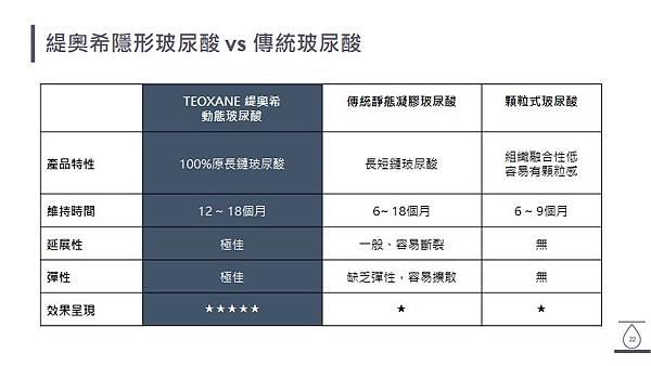 從上面的比較可以看出,Teoxane緹奧希玻尿酸在延展性和組織融合度上的優異表現,讓它在處理動態紋路時,幾乎不會有破綻。 這對於表情豐富、經常需要微笑或說話的朋友來說,真的是一大福音。