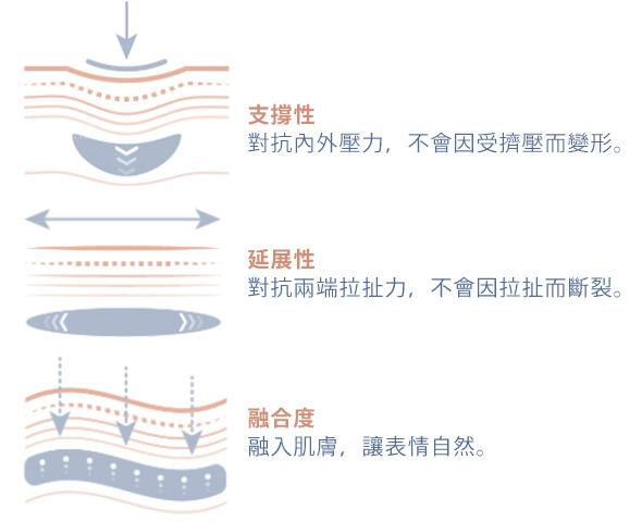 - 完美的融合度:施打後能迅速與我們的皮膚組織融合,完美填補凹陷處,讓肌膚看起來飽滿又平滑。因為高度親膚,表情看起來生動不僵硬,觸感也更自然。